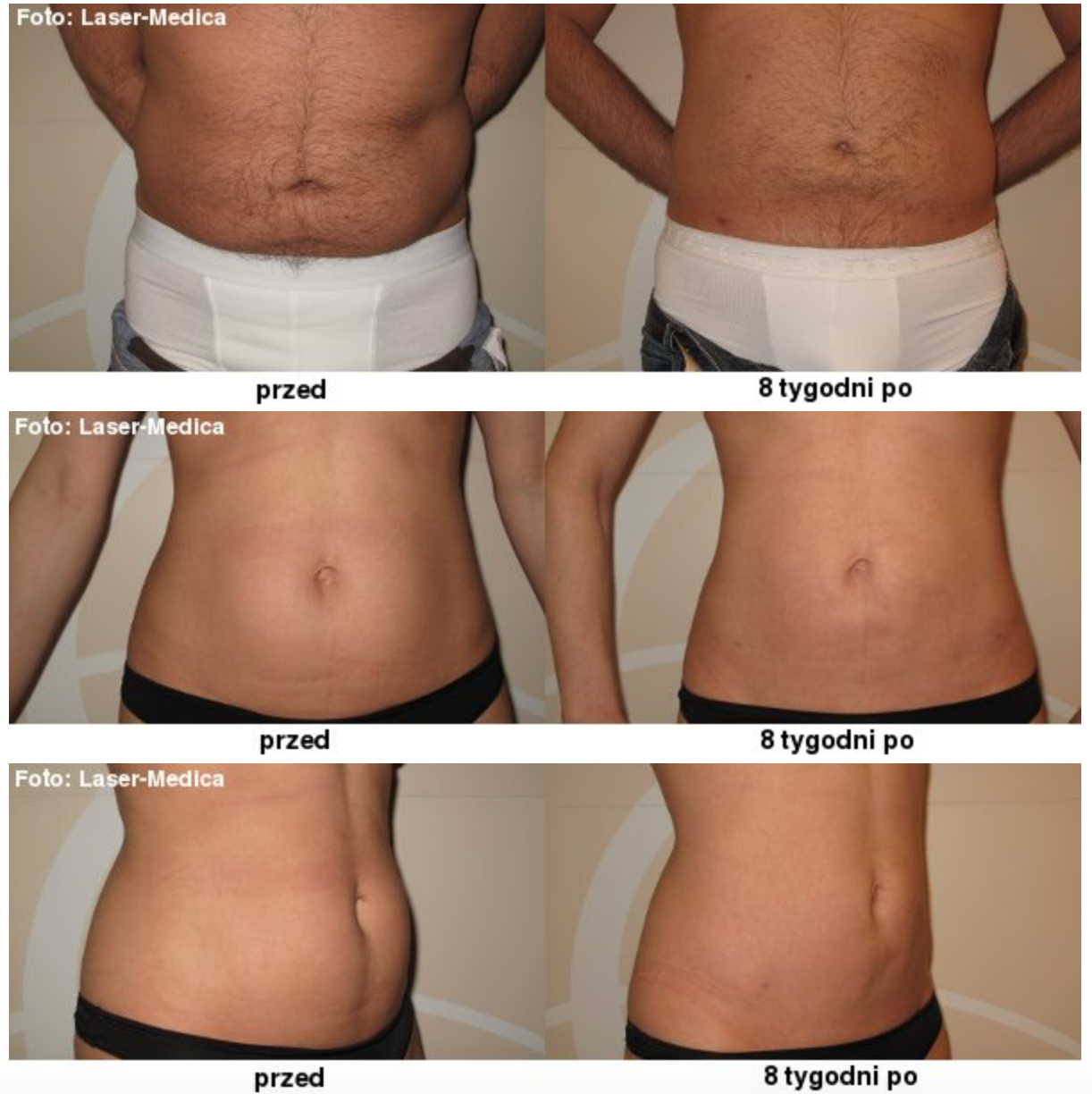 Liposukcja laserowa to małoinwazyjna procedura chirurgiczna polegająca na użyciu lasera diodowego Velas 60 o długości fali 940 nm, do trwałego uszkodzenia komórek tłuszczowych znajdujących się w tkance podskórnej. Zastosowanie takiej właśnie długości fali jest nieprzypadkowe, ponieważ jest ona zbliżona do piku obsorpcyjnego tłuszczu, co gwarantuje mało bolesną i skuteczną liposukcję lokalnych otyłości. Dodatkowe działanie lasera na drobne naczynia krwionośne powoduje ich koagulację a w połączeniu z adrenaliną w roztworze znieczulającym, ogranicza krwawienie. Dzięki temu niweluje powstawanie krwiaków i skraca okres rekonwalescencji. Zabieg przebiega w trzech etapach.